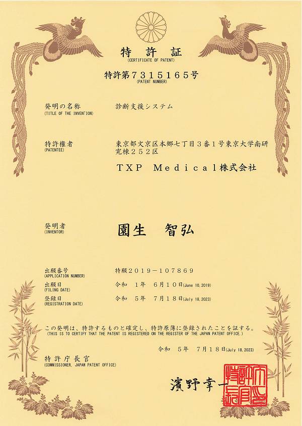 TXP Medical株式会社は「診断支援システム」についての特許を新たに取得。これにより致死性の高い疾患の見逃し防止を実現します。