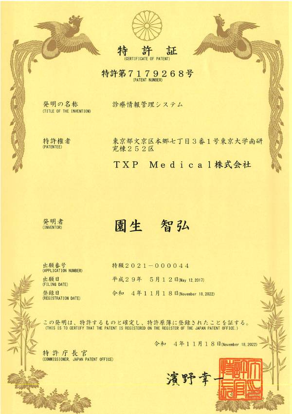 この度、TXP Medicalは「診療情報管理システム」についての特許を新たに取得いたしました。